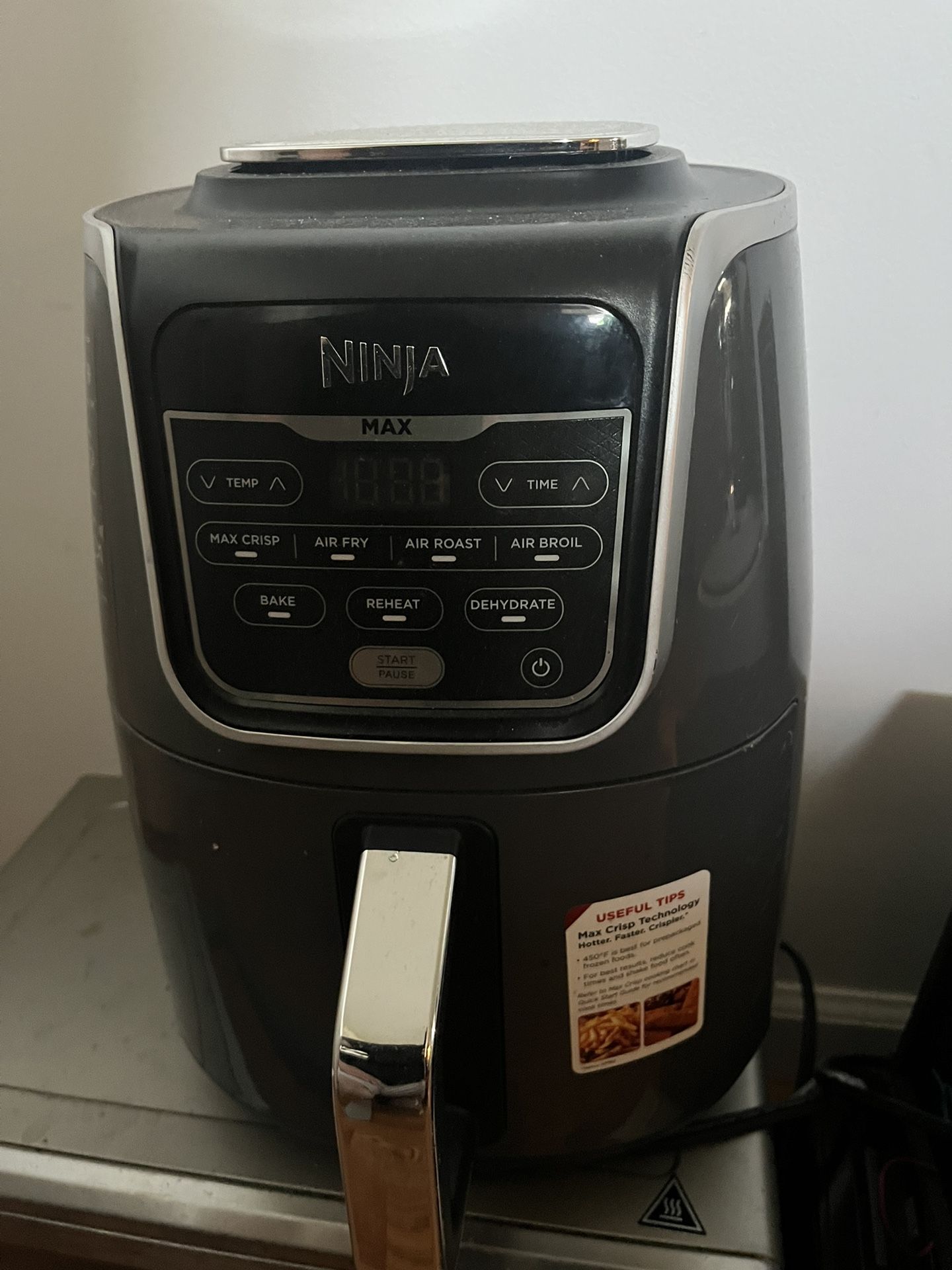 Ninja air fryer, this thing cooks real fast. Great condition. I purchased a large one so no longer need this.