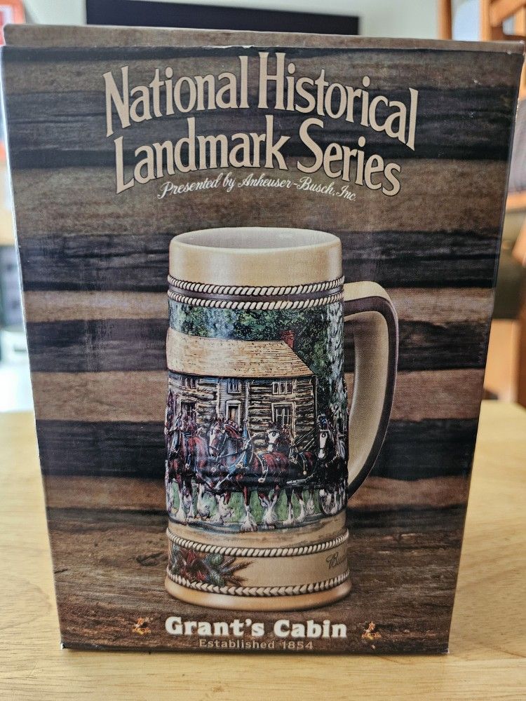 This is a nice Budweiser National Landmark Series Grant's Cabin collectable Stein. Buyer to pick up in Fox Lake or possibly meet at an agreed location. Buyer to pay cash.