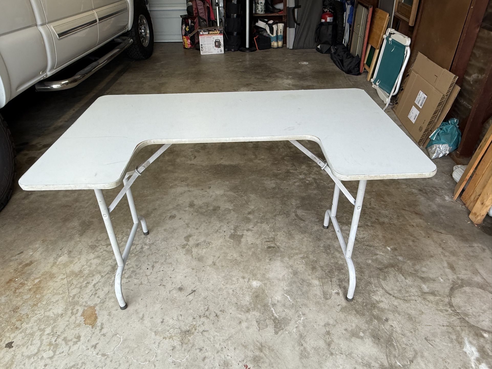 Sturdy, heavy duty desk. In good used condition Desk is very much intact. Folds flat. $15