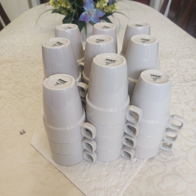 Vtg IKEA FÄRGRIK Stoneware Stackable Coffee Mugs–Neutral Beige–Set of 12–Dishwasher & Microwave Safe