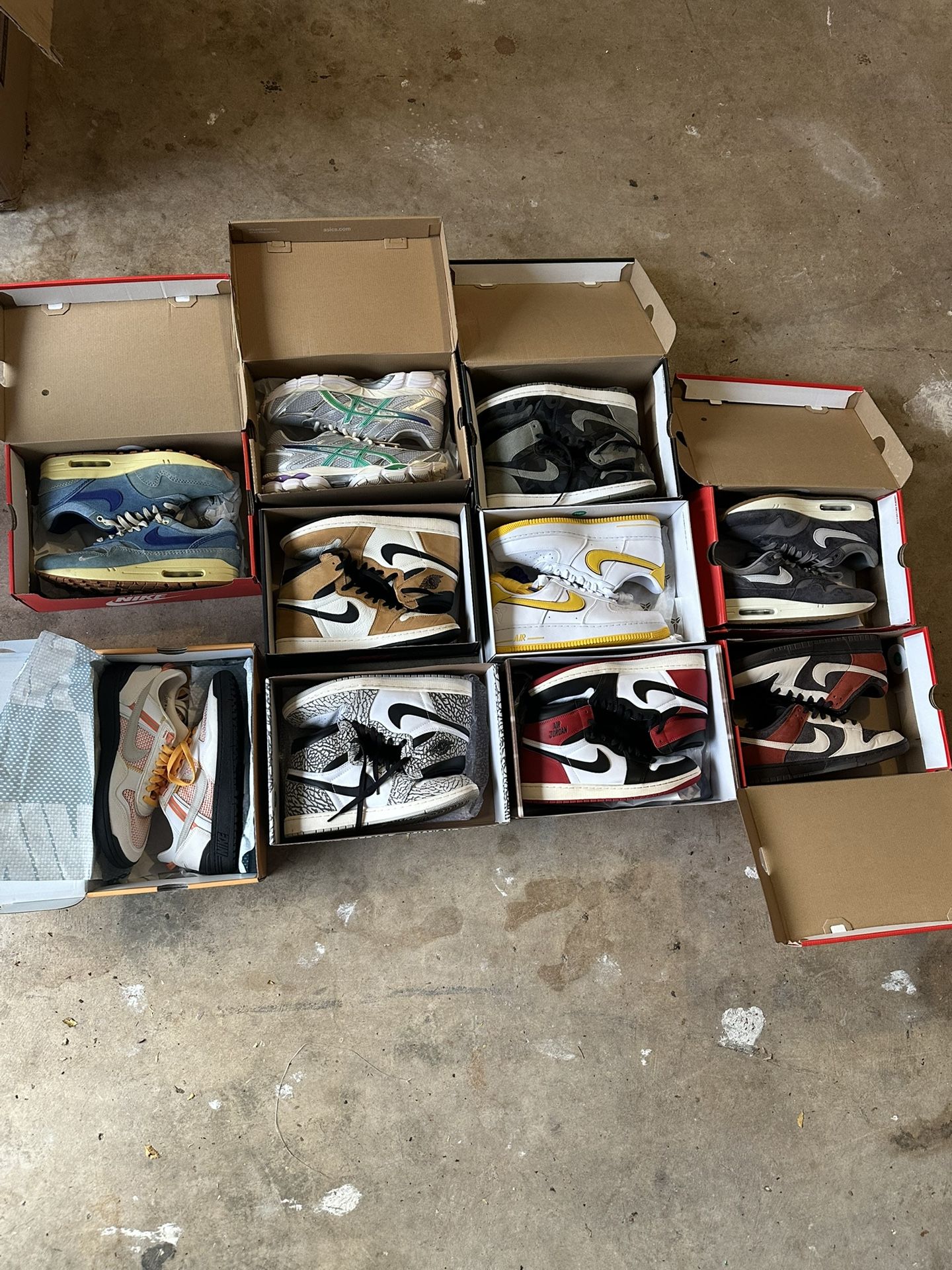Priced to sell Union field general 9.5 - $75 Jordan 1 white cement 9.5 - $100 Jordan 1 black toe 9.5 - $140 Jordan 1 shadow camo 9.5 -$170 Jordan 1 ROTY size 9 - $140 Kobe Air Force DS size 9.5 - $140 Dunk low red panda size 9.5 - $100 Air max 1 denim size 9.5 - $80 Air max 1 soft grey 9.5 $125 ASIC tomo summit 9.5 DS - $150