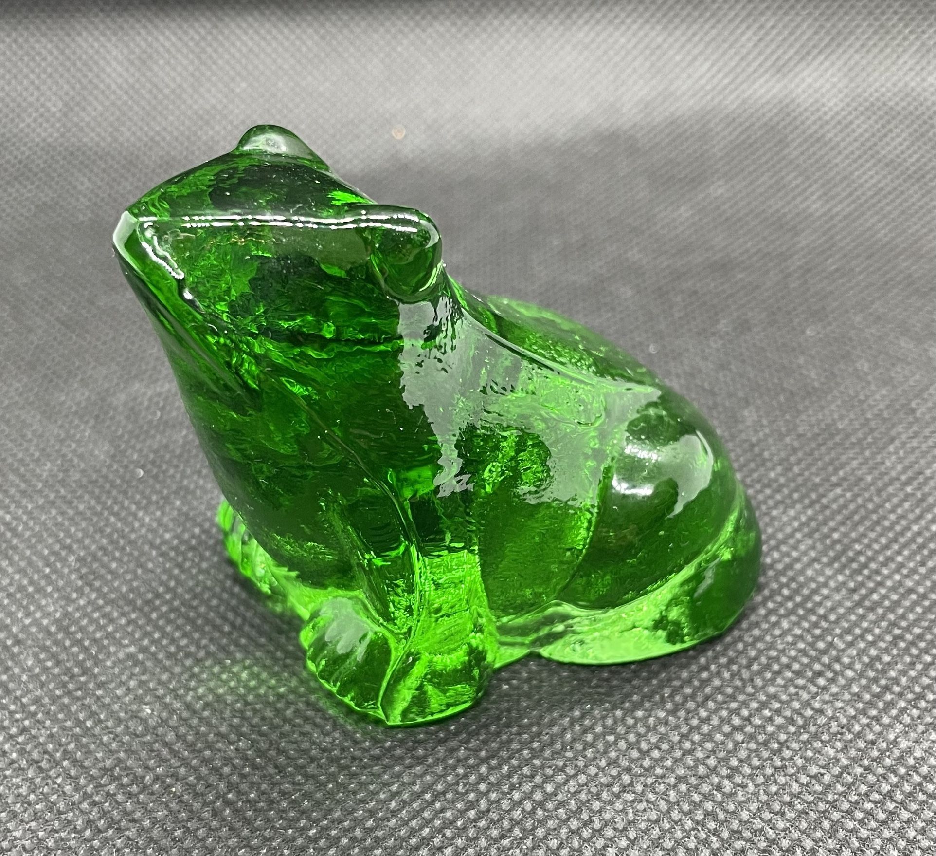 The cutest little critter! This bright green pressed glass frog can be used as a paperweight or just decor. Frogs are associated with health and transformation in the Chinese culture. Excellent condition! 1930’s piece. 1.5” T X 1.5” W X 1.75” D Handmade