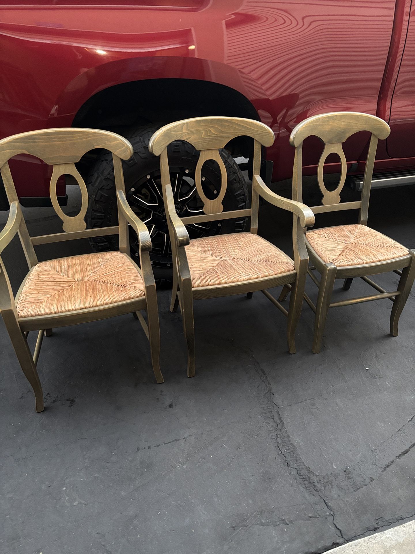 Pick up only If it’s listed , it’s available -no need to ask 😉 No holds Cash please 3 (2 armchairs and 1 standard chair )in perfect condition. Beautiful solid-wood dining chairs crafted in Italy for Pottery Barn’s Provence Collection. Features hand-woven rush seats, graceful curved arms, and a light coastal-wash finish — the perfect blend of European farmhouse and California coastal charm. Sturdy, elegant, and timeless. Pickup only at our storage unit in San Juan Capistrano