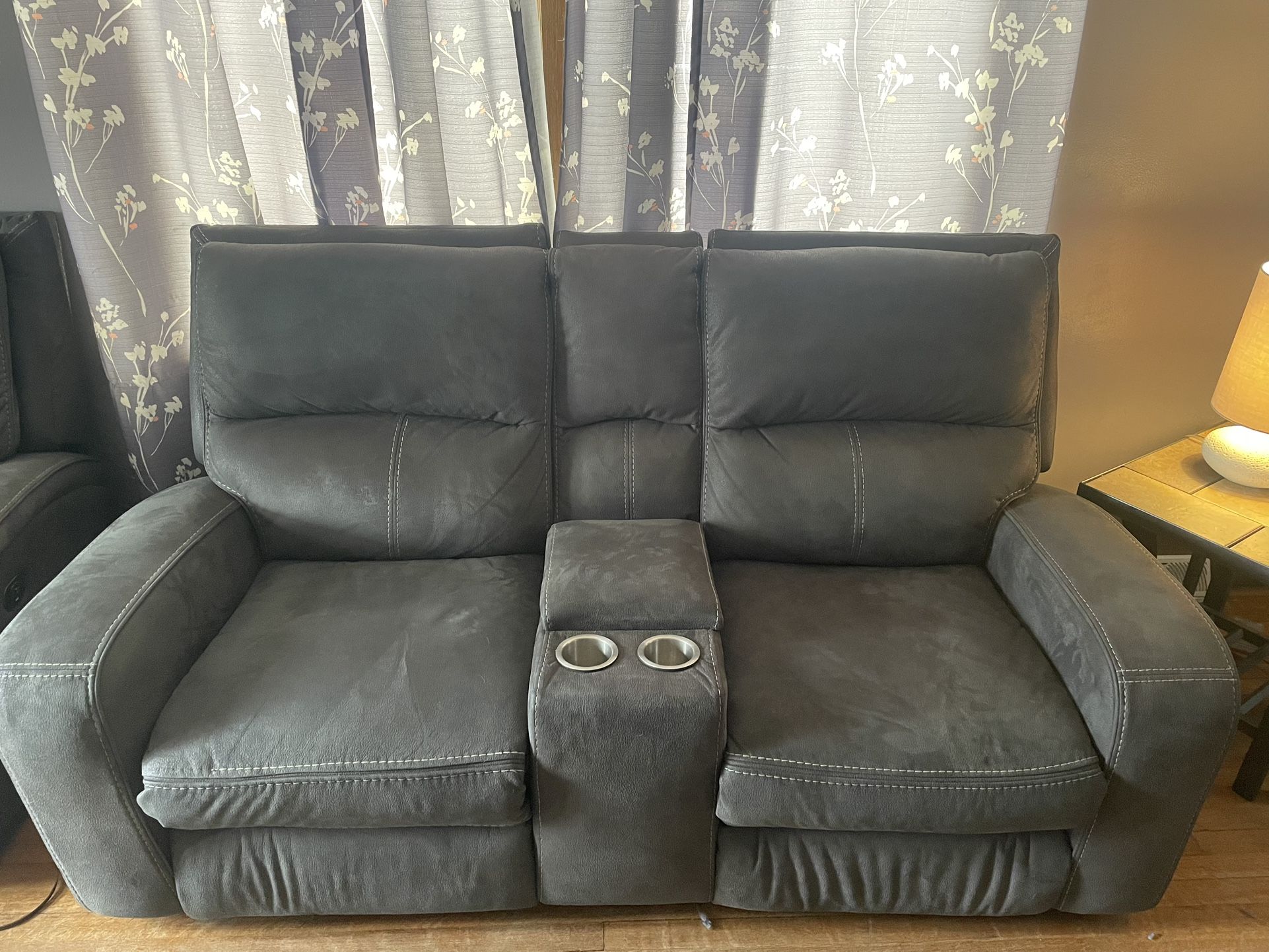 Power reclining couch and loveseat, less than two years old. Smoke free home, but do have pets. Couch has barely been used.