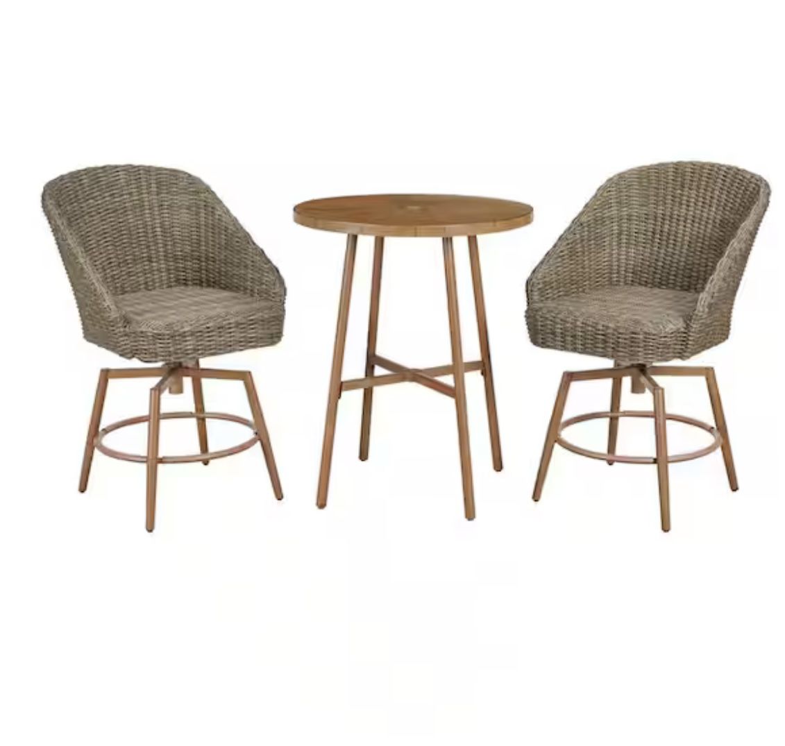 Hampton Bay Capestone Brown 3-Piece Wicker Round Table Outdoor Dining Set patio Brand new in box 📦 Asking 350
