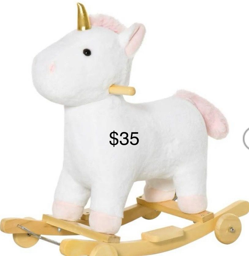 Qaba - 2-in-1 Rolling Rocking Unicorn with Sound