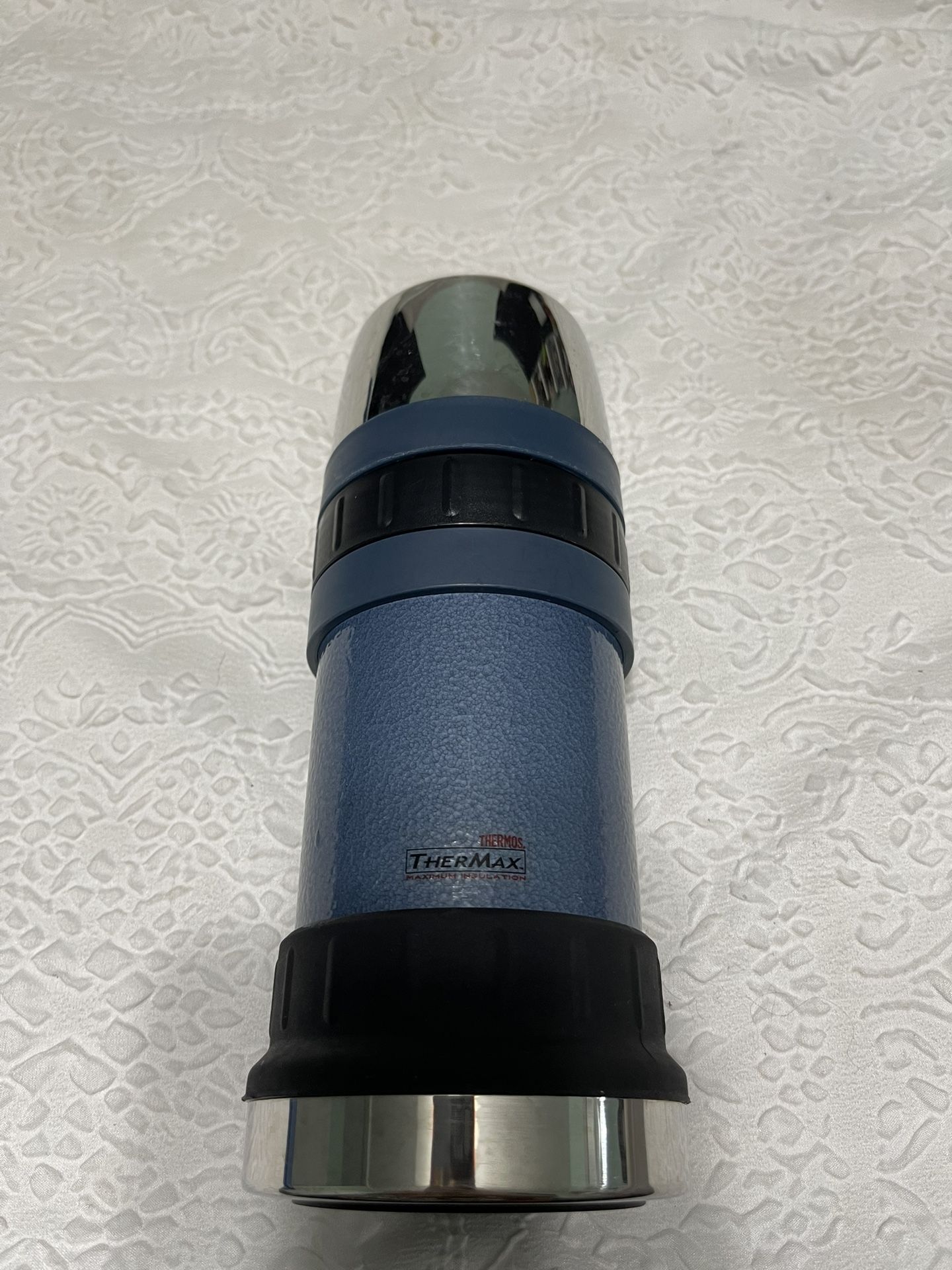Blue and black Thermos TherMax Maximum Insulation!! It’s in great condition & Comes with a detachable top. + spoon!OBO