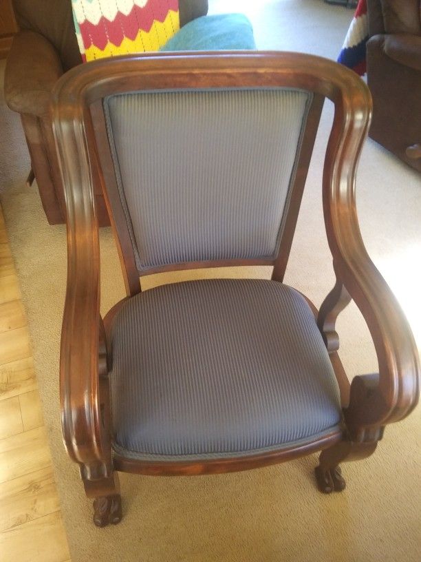 Solid Black Walnut Chair. Have had Scence late 80s. Was redone around 2003. Don't know year or where came from. No marks to tell year or maker. I got chair in michigain. Very heavy. Is a wide chair Has a few scratchs but in great shape. If any know where I can find a matching one let me know..$600.00 cash an must pick up. Thanksl