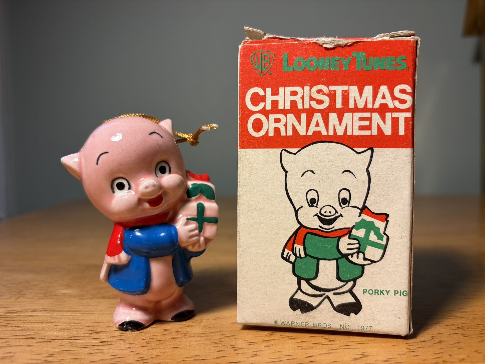 VINTAGE WARNER BROTHERS PORKY PIG CHRISTMAS TREE ORNAMENT IN BOX