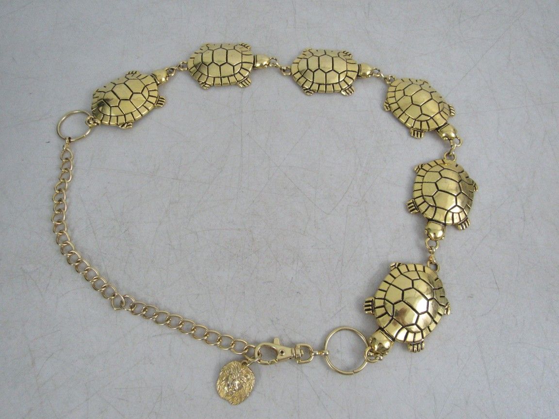 Ladies Brass Plated Metal/Steel Turtles Belt- 37" Length