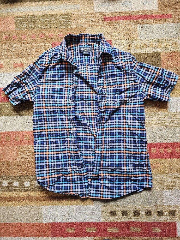 Claiborne Stretch Plaid Flannel Short Sleeve Button Up (Small) Everyday Casual Y2K