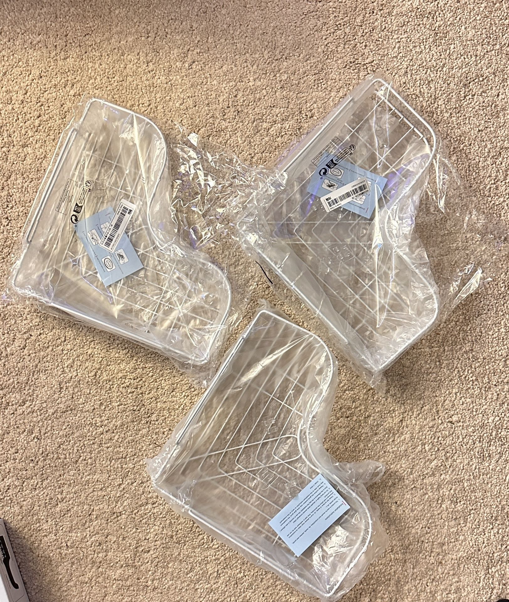 brand new in bag 3-pc Bathroom Shelf, Shower Caddy Rack, Bathroom Kitchen No Punching Triangle Storage Rack 3-pack 03010 firm on price,Thank You !!