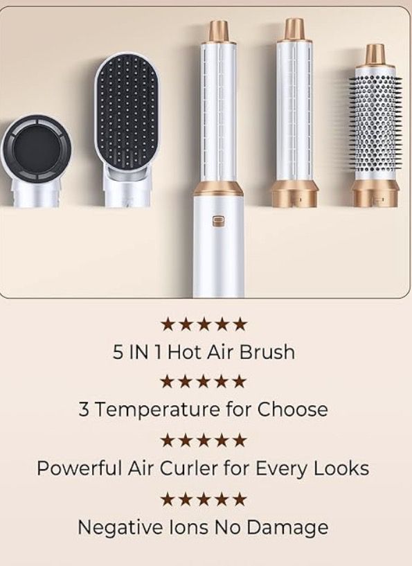 (212121-44) 5 in 1 Blow Dryer Brush, Upgrade Hair Dryer Brush Air Curler Air Curling Wrap Styler, Detachable Hot Air Brush Negative Ion Curling Brush