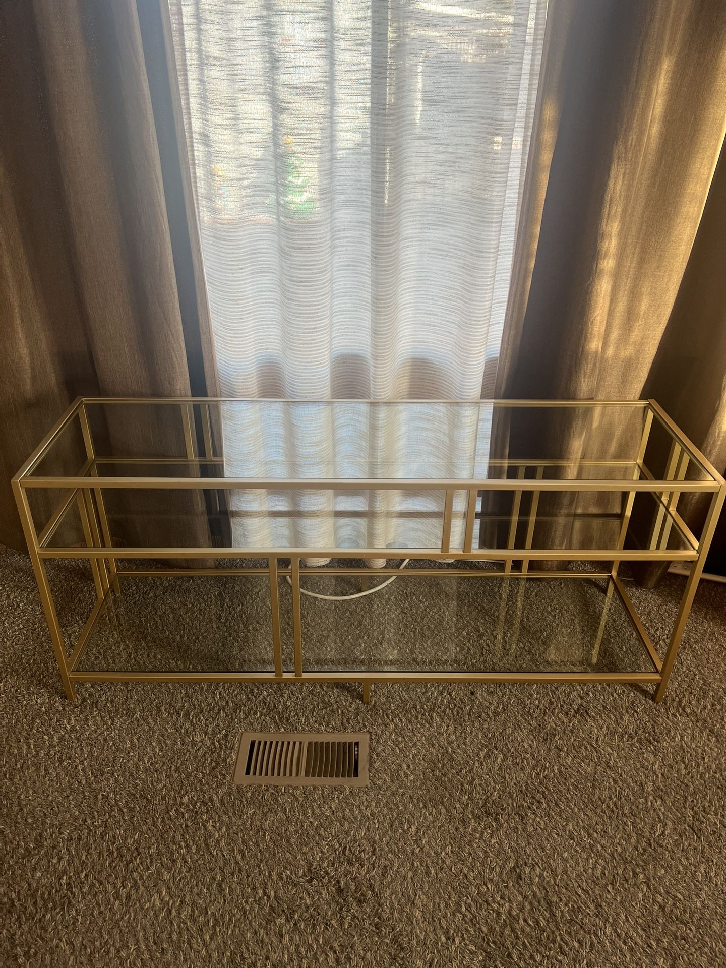 ❗️Product details❗️ This stand has a (heavy) weight capacity of 75 lbs. It can be used as a TV Stand or a coffee table whatever your preference :) It has tiny scuffs from usage but nothing major as shown in images. Still has a lot of life to it. ❗️Measurements❗️ 55''W x 16''D x 24''H (Also listed in images for reference.) Color: Brass Shape: Rectangular Accommodates TVs up to 60". Hand crafted brass finish applied to a steel frame 📍Location: 3300 15TH ST W in Rosamond. 💸 Accepting cash or Zelle. 😌 Se Habla Español 🚚 No deliveries
