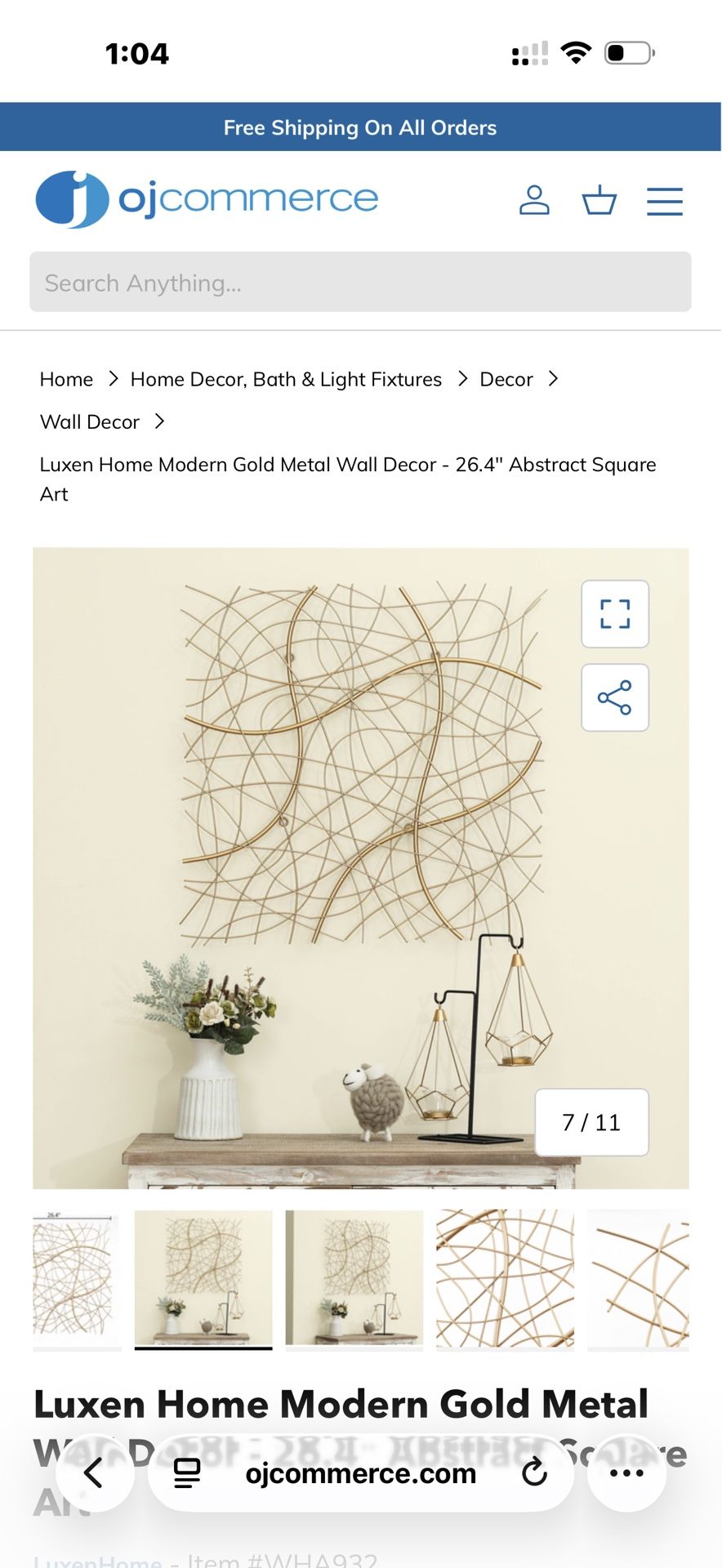 Luxen Home Modern Gold Metal Wall Decor - 26.4" Abstract Square Art