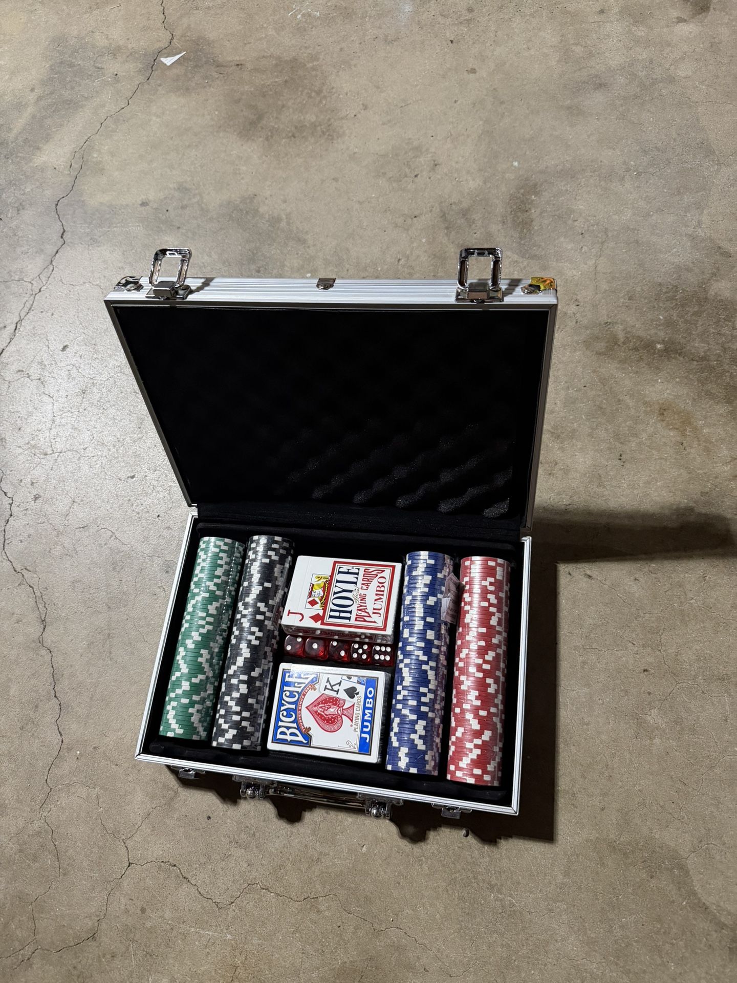 Poker Set 200 Chips new Open no box It includes 4 decks new 2 opened and 2 unopened Chips are still in plastic wrapping No low ballers