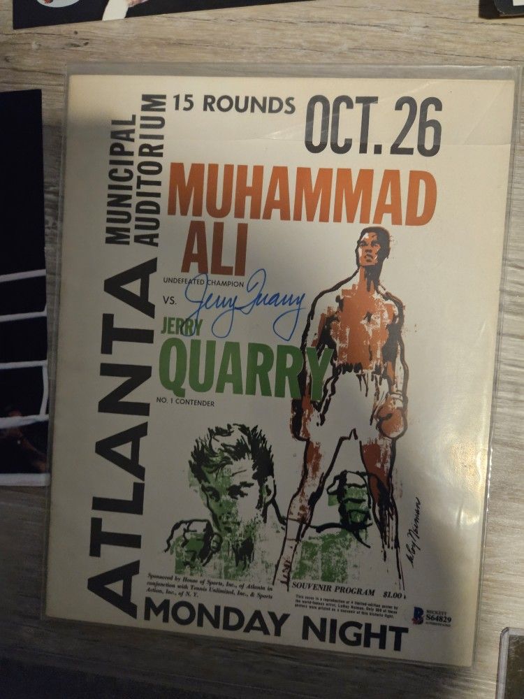 FS $575 SHIPPED 1970 Original un scorred Muhammad Ali vs. Jerry Quarry, On-Site Fight Program Signed by Jerry Quarry bas. Plus Sporting Profiles card Signed by Ali.