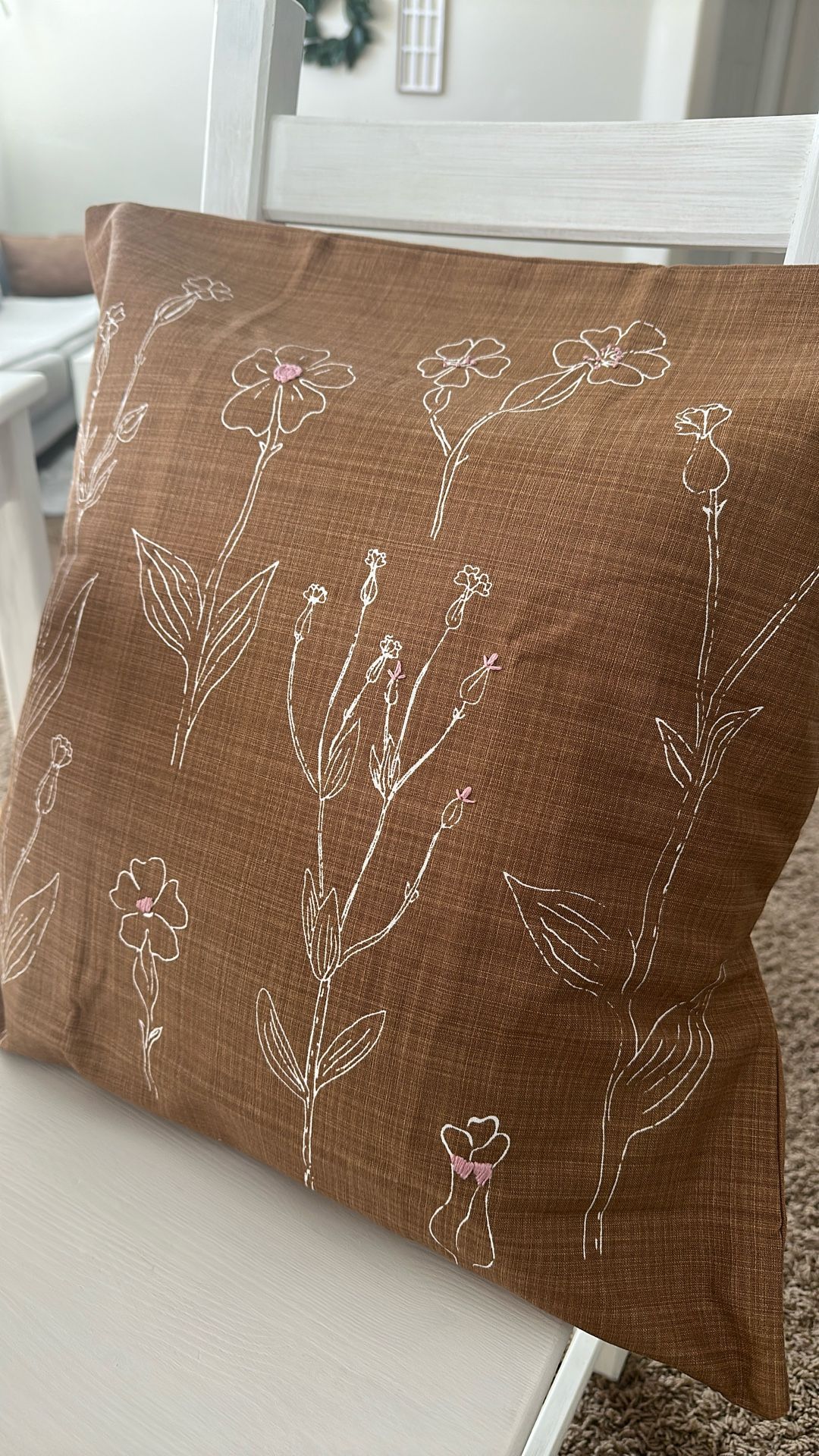 NEW White Pink Floral Brown IKEA Decorative Pillow Cover 20X20