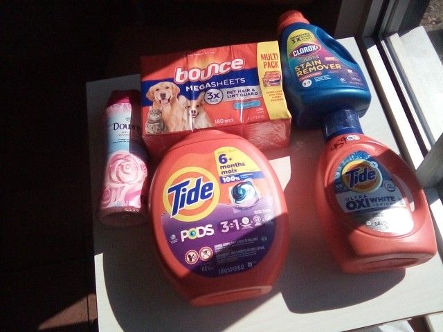 Tide Pods, Bounce Dryer Sheets, Laundry Beads