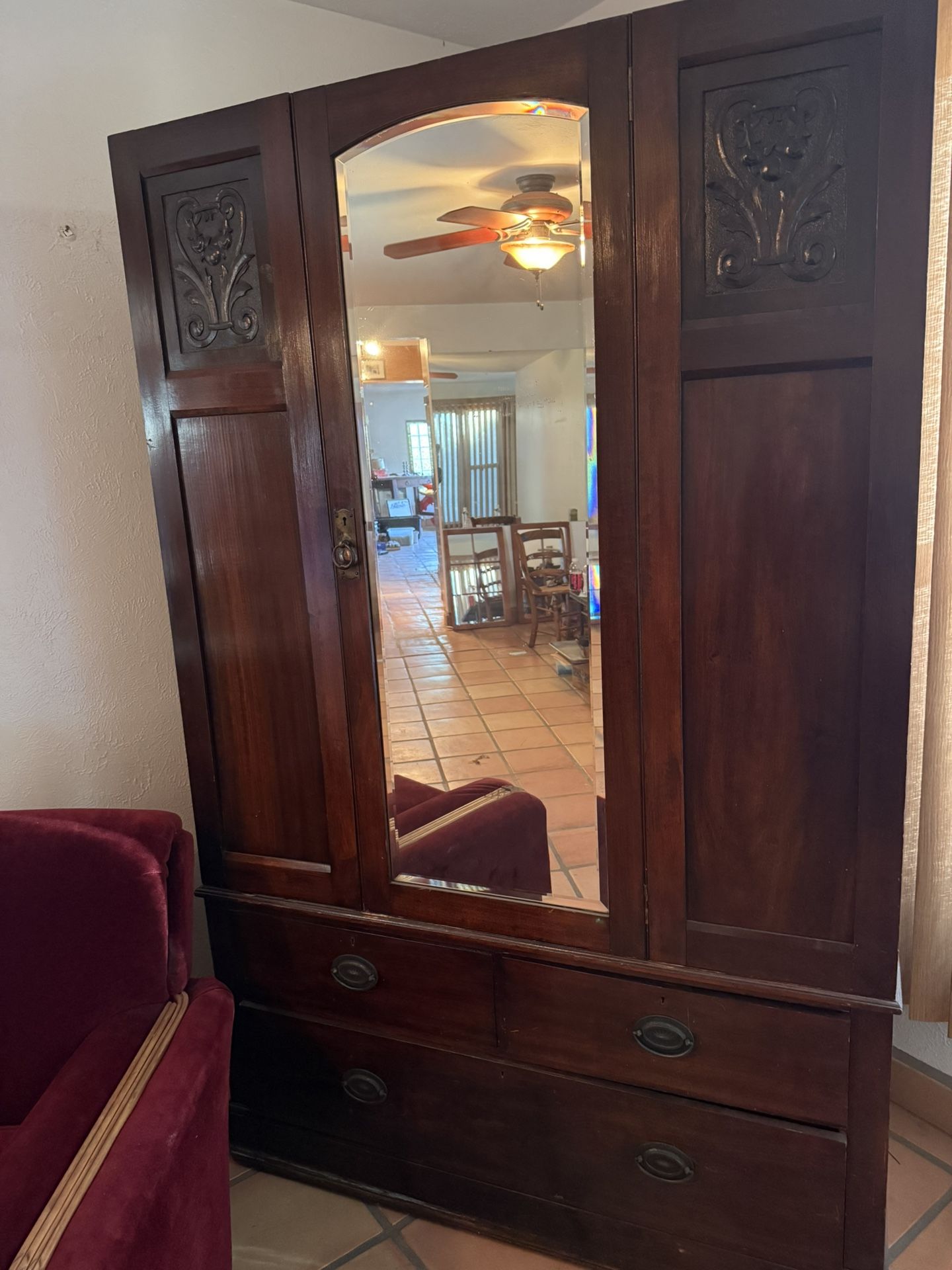 Beautiful vintage details Pick up only Estate liquidation priced to clear out everything must go Mirrored Hooks on inside Carved details