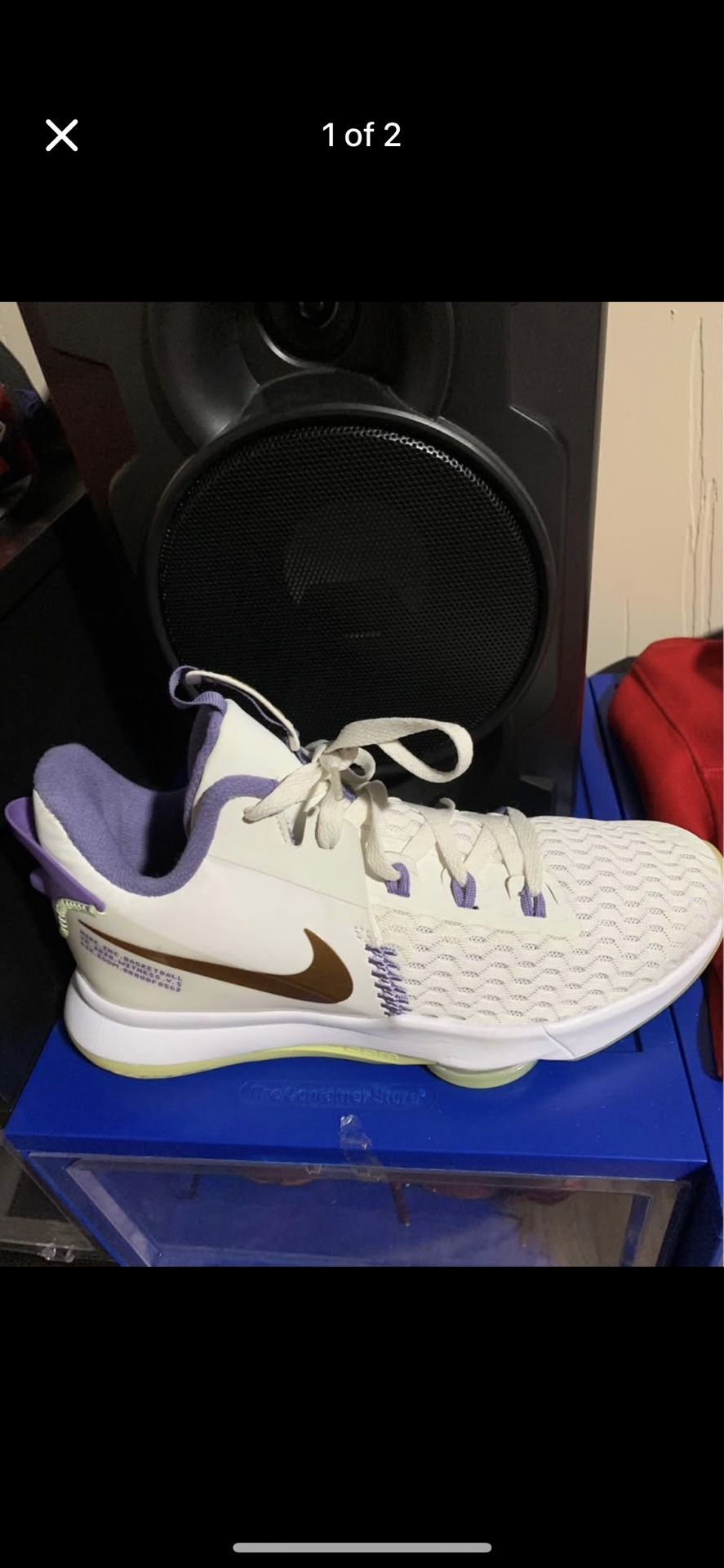 Nike LeBron Witness 5 Summer White/metallic bronze ,Size 9 , no box, kept in clear shoe bin. brand new never worn. Cross posted on other pages