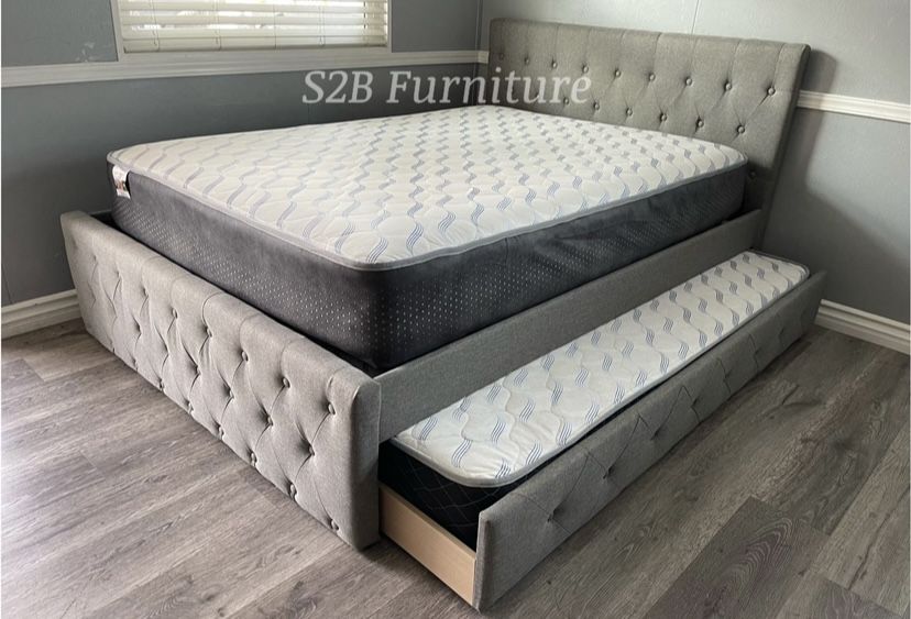 Full Twin Grey Frenchi Trundle Bed With Ortho Mattress Included