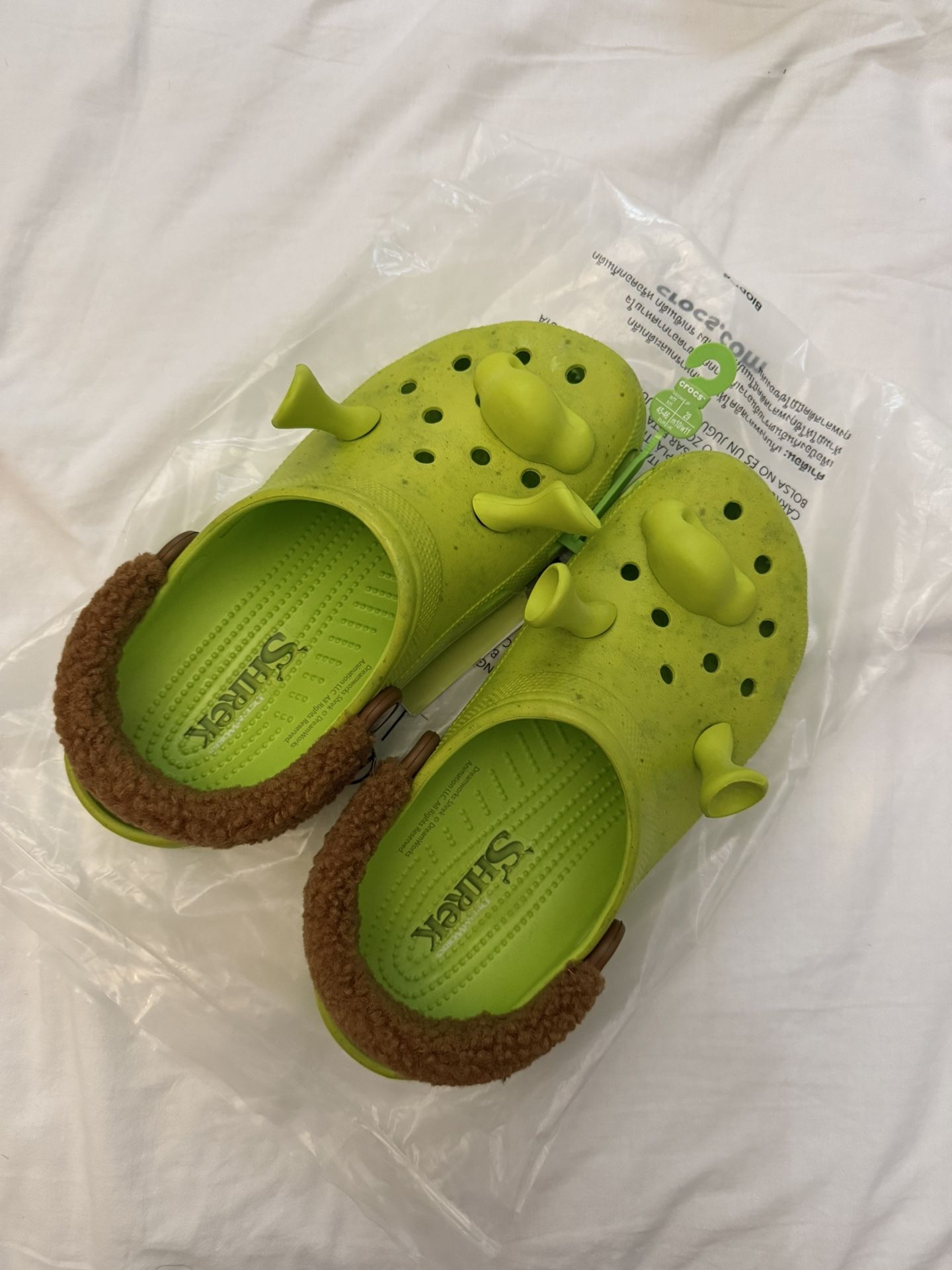 Limited-edition Shrek Classic Crocs in the rare Lime Punch colorway. Brand new, never worn, still sealed in the original Crocs packaging. Details: • Size: Unisex M11/W13 (EU 44–45) • Official Shrek collab with ogre ears + fuzzy heel strap • Authentic Crocs product (see tag in photos) • Perfect for collectors, fans, or anyone who wants the coolest Crocs ever made Condition: 10/10 brand new