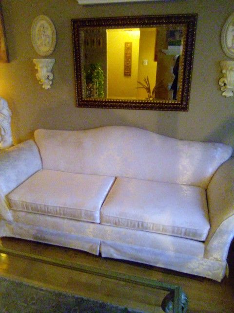 White floral print sofa in very Good condition like New with protective guard 6ft . Long 3ft. Deep 34in High