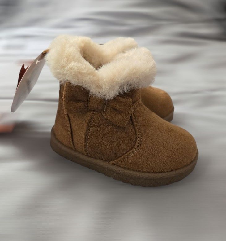 NWT Brand: Wonder Nation Style: Suede Boots Size: Infant Girls 3 Materials: Faux Fur, Rubber sole Color: Chestnut Brown Features: Easy pull-on style with velcro closure on the side, soft faux fur lining and collar, and a cute side bow detail. *I ship every day.