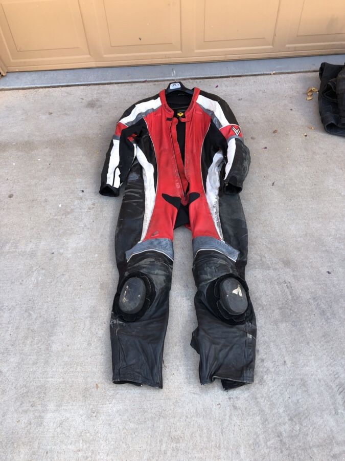 Frank Thomas Kangaroo leather motorcycle leathers. 1-piece leathers great for tack or street riding. Super lightweight kangaroo leather. Scuffed from minor lowside but in good shape. $75.