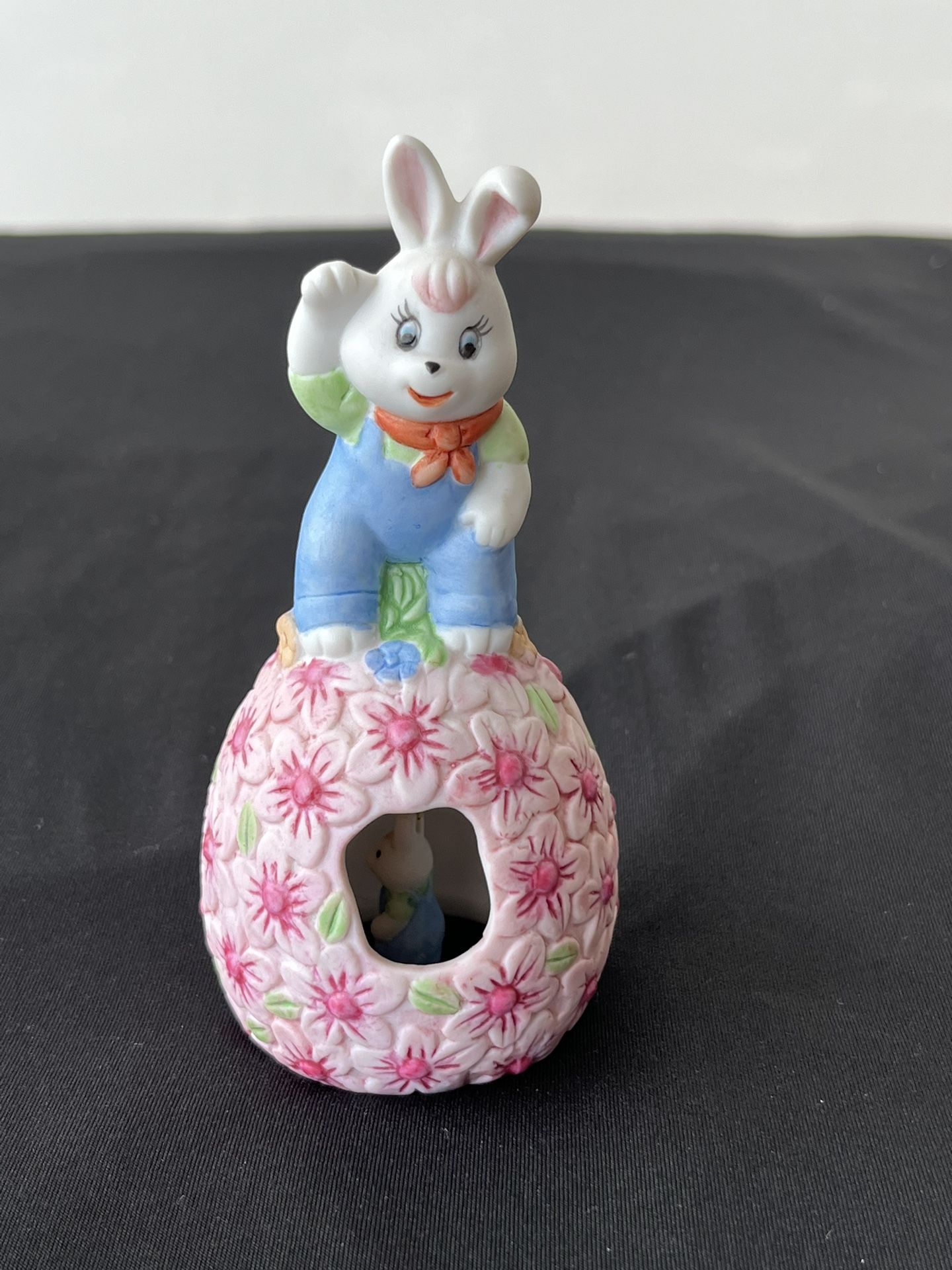 Porcelain Easter Egg “Bunny Bell” with Bunny Clapper Rabbit Doing Floral