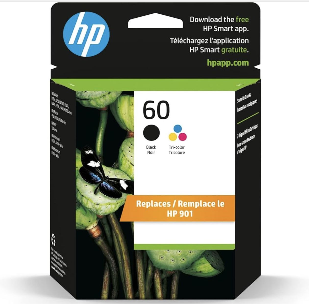 HP 60 Black/Tri-color Ink Cartridges (2-pk) | DeskJet D1660, D2500, D2600, D5560, F2400, F4200, F4400, F4580; ENVY 100; OfficeJet J4500, J4680, 4500; PhotoSmart C4600, C4700, D110a | N9H63FN