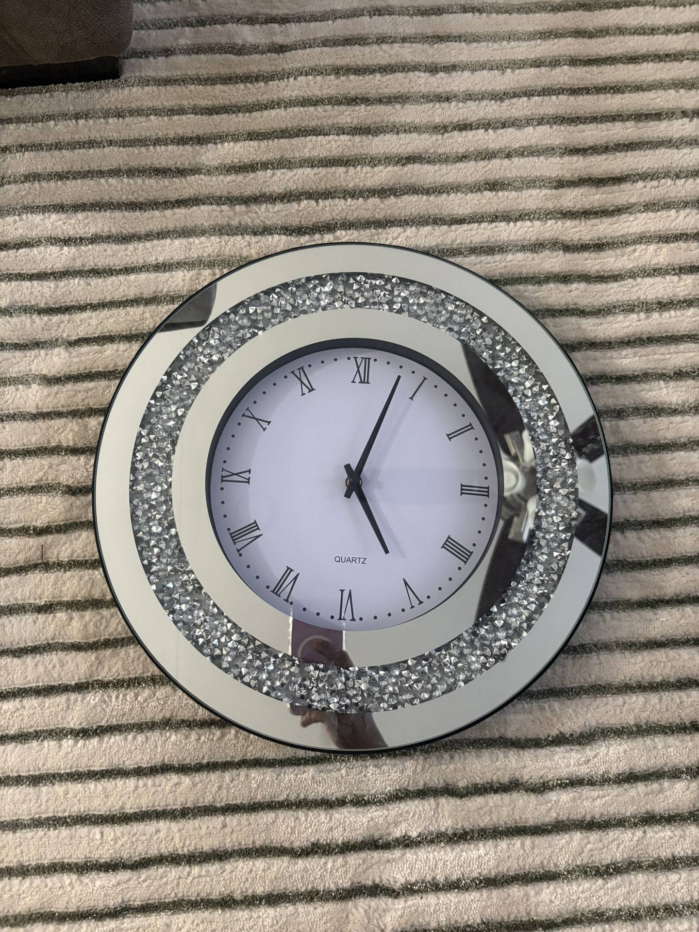 Large crystal wall clock, bright silent crushed diamond wall clock, crystal clock, 15.8-inch round mirror clock for bedroom, school, home office decor