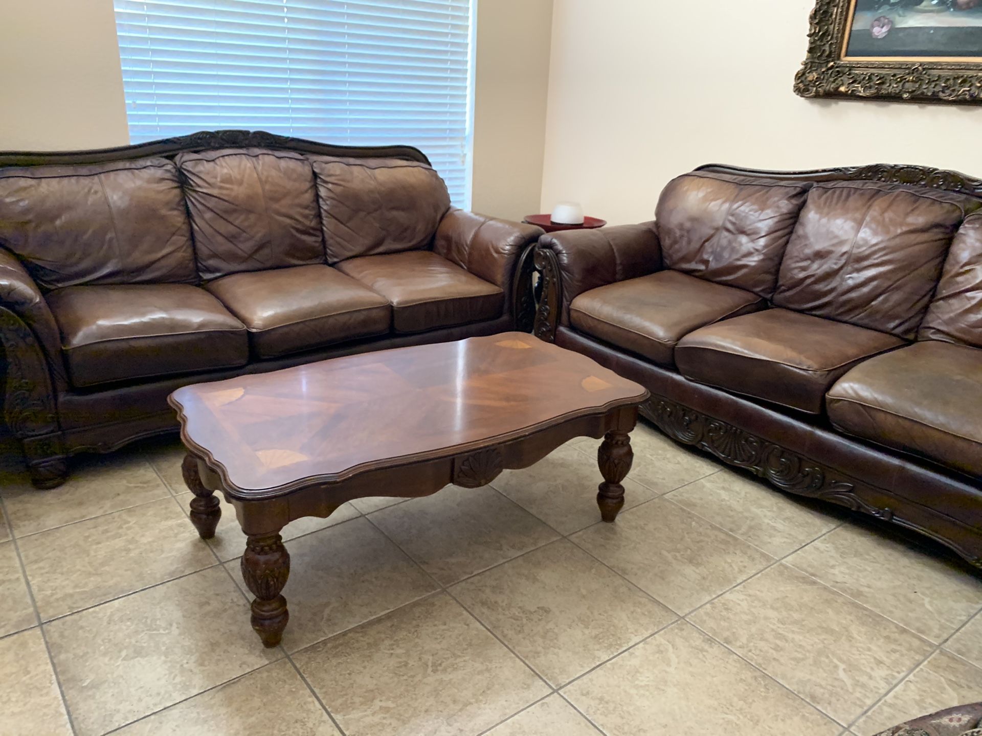- Brown Leather couches - From ashley's - Still in great condition Contact me for more details!