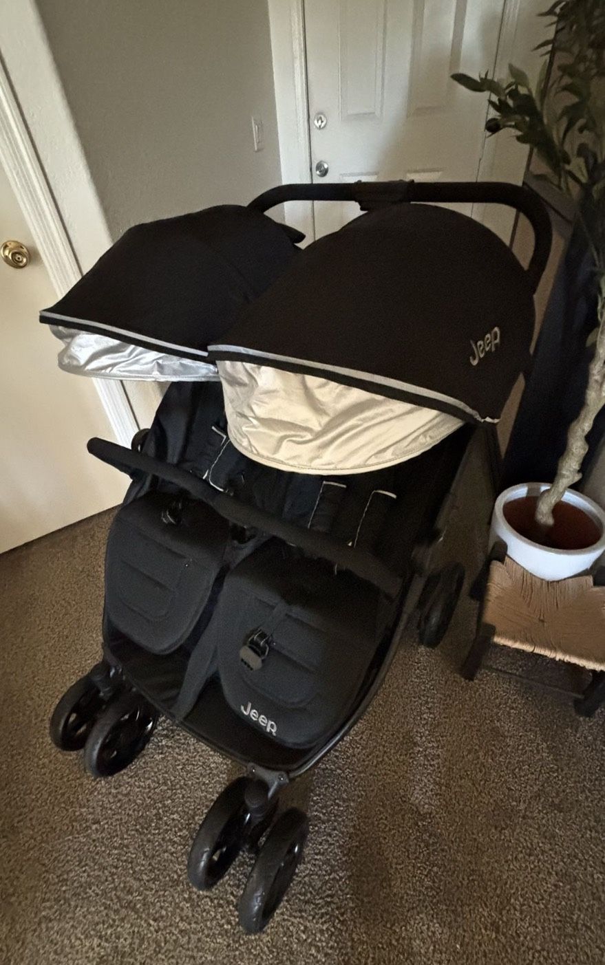 NEW! Jeep Destinations side by side Stroller New assembled for your convenience box available Jeep double stroller for 2 adjustable strap compact fold. Stroller stands when folded. Perfect for Disney. Fits standard doorways. A few left! $185*** (price is firm) Retail $299+tax S Phx 12st/southern or meet ups.