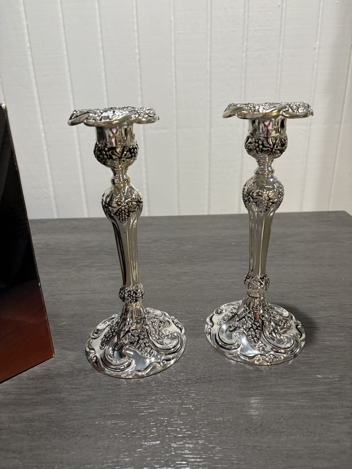 Vintage Barbour Silver Grape Vine 9” Candle Stick Holder Set Of 2