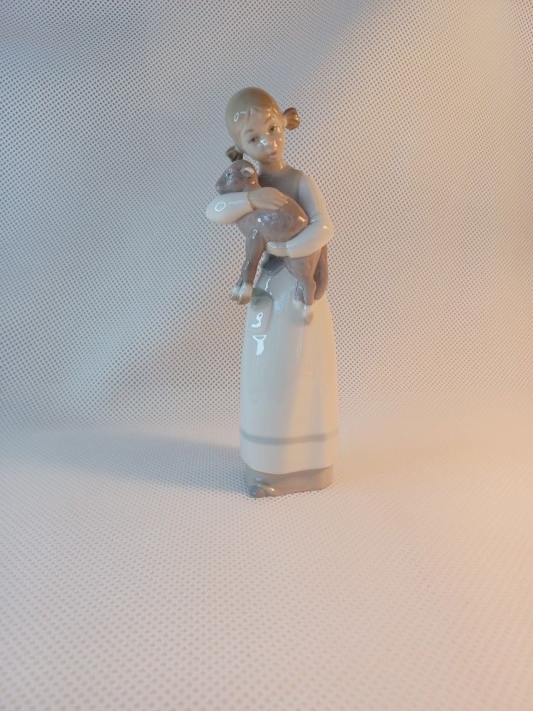 LLADRO 1010 GIRL WITH LAMB VINTAGE 1977 8-1/2" H FINE PORCELAIN FIGURINE