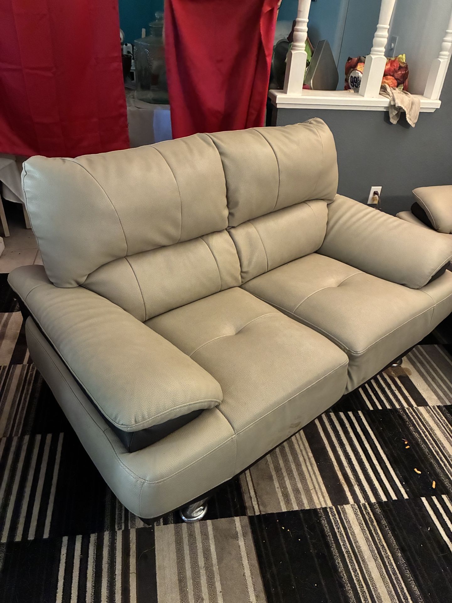 I have a Tan set of leather couches no rips or tears just a stain on the love seat which picture shows. Asking 1,000 o.b.o pick up only unfortunately.