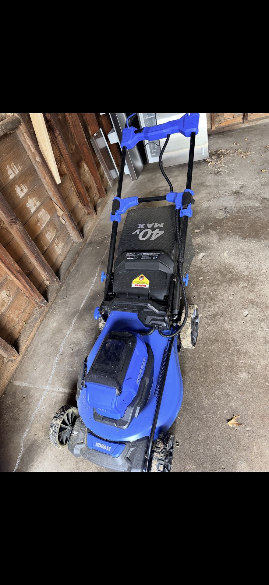 Yard equipment bundle for sale: lawn mower, weed trimmer, and leaf blower. Good condition, includes charger. Ready to use.
