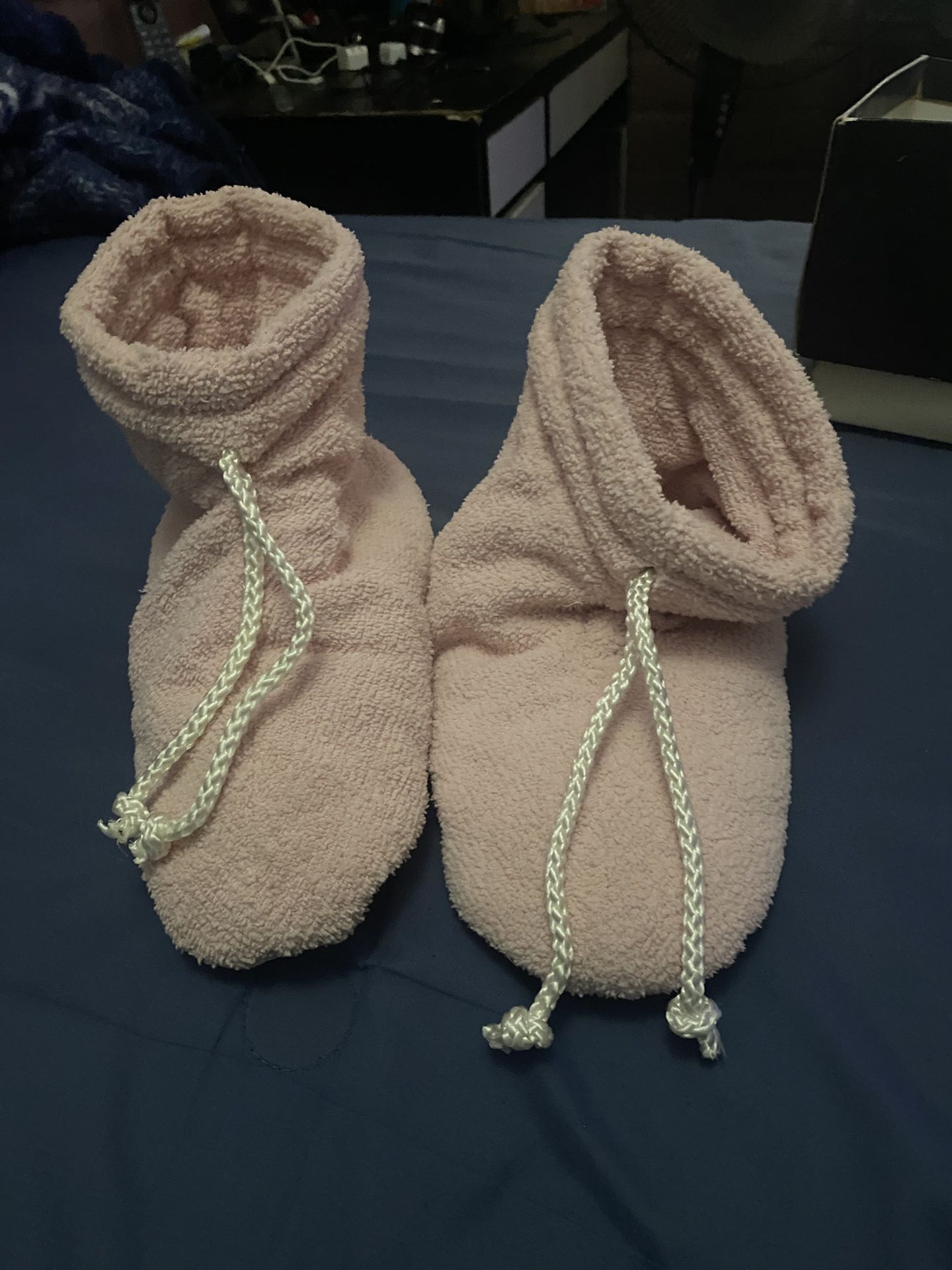 Has removable beads pack that you placed in the microwave. Doesn’t say the actual size.