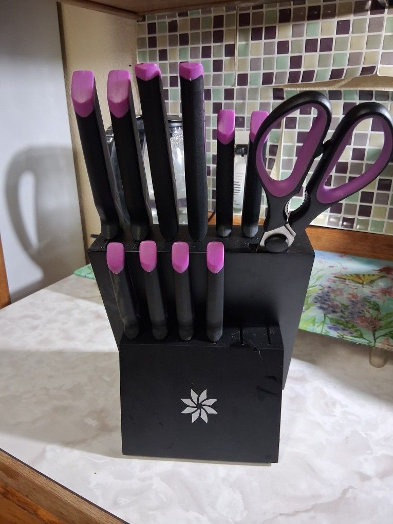 Avety Knife Set – Quality Kitchen EssentialAvery knife set in great condition, perfect for everyday cooking or upgrading your kitchen tools. Well‑balanced and sharp, these knives handle slicing, chopping, and prep work with ease.Stylish and practical, this set is ideal for home cooks or as a gift for someone setting up a new kitchen. Ready to be put to work on your counter right away.