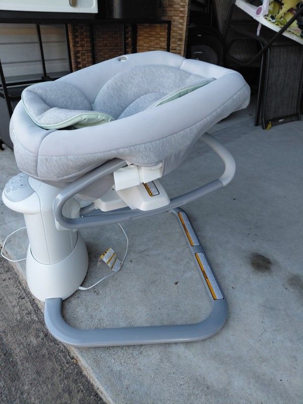 Only used for 2 months. The stick with the monkey and star is missing. For vibration setting, needs new batteries. But the different Swing settings just need to be plugged into the wall for use.