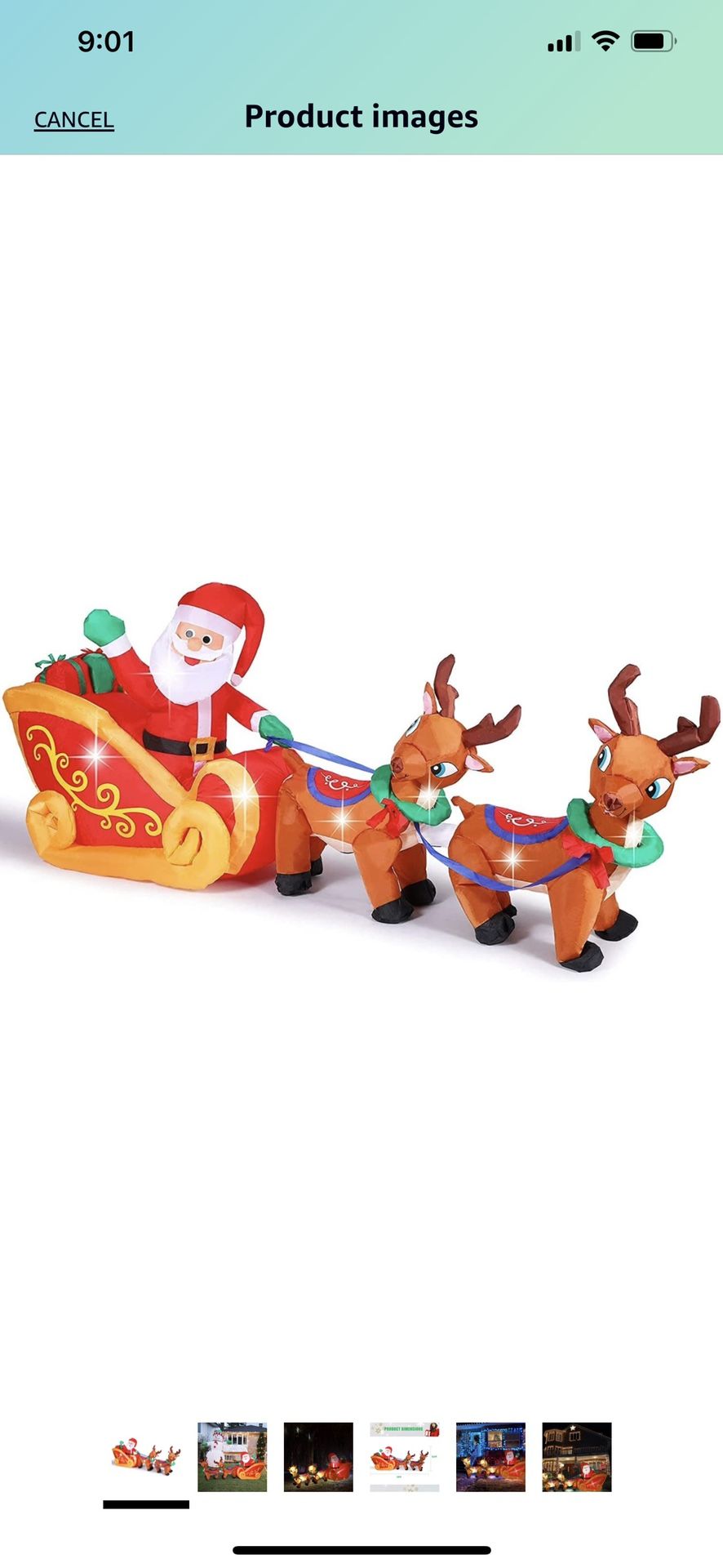 Inflatable Christmas Yard Decorations 8 FT Christmas Inflatables Decorations Outdoor Deer Cart with Santa, Blow Up Yard Decoration Clearance with LED
