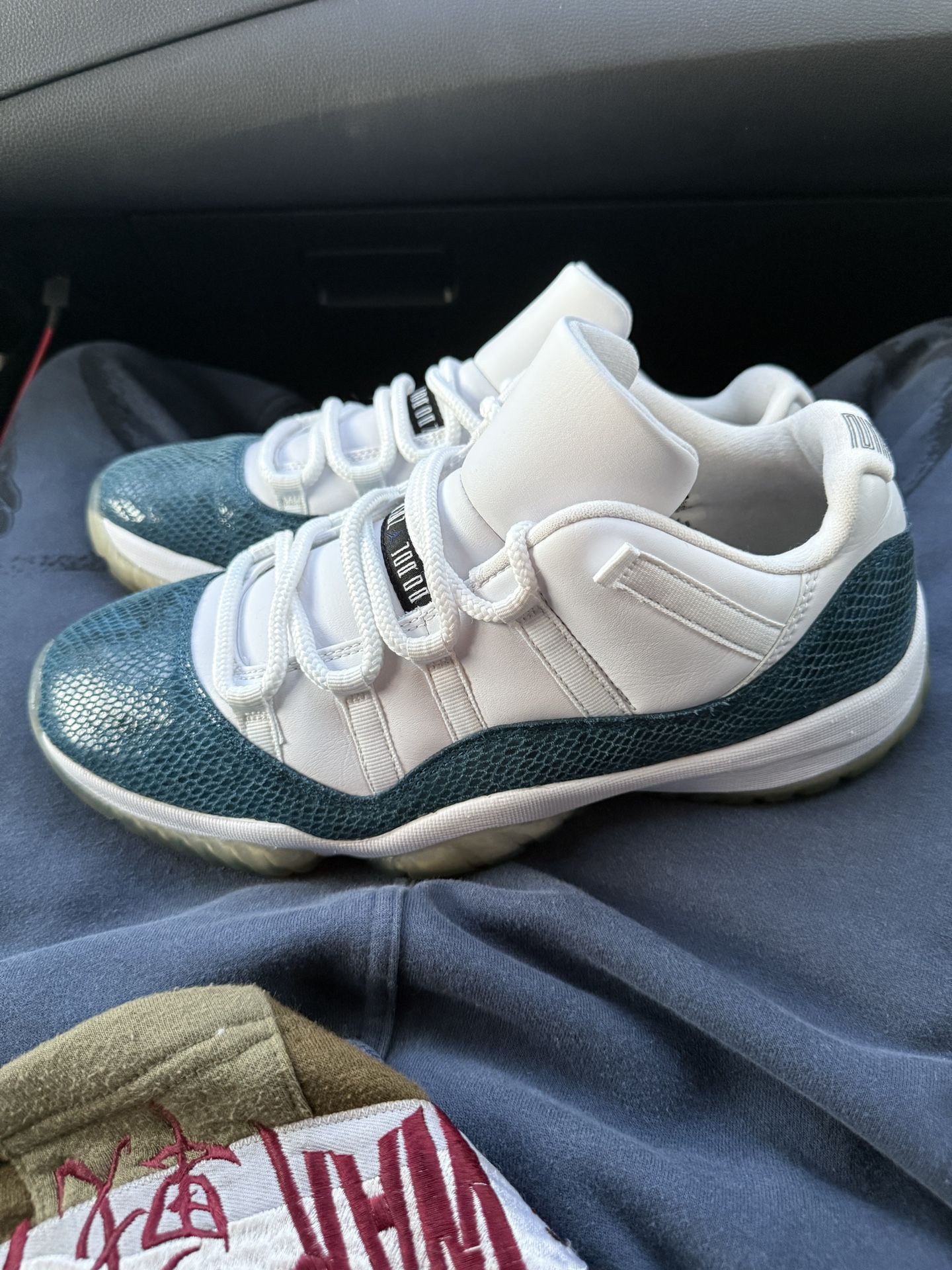 Jordan 11 Low Blue Snakeskins Size 11 No box and small scratch on tounge of the right shoe as seen in the last photo other then that super clean condition asking 130 or best offer open to trade for size 9 shoes or any offers