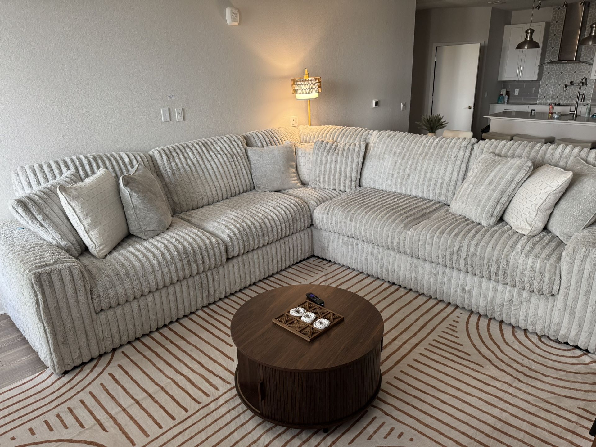 Large grey sofa very comfortable. Had it less than 1 year. In great condition. Come with a middle console table. Asking $3000 obo