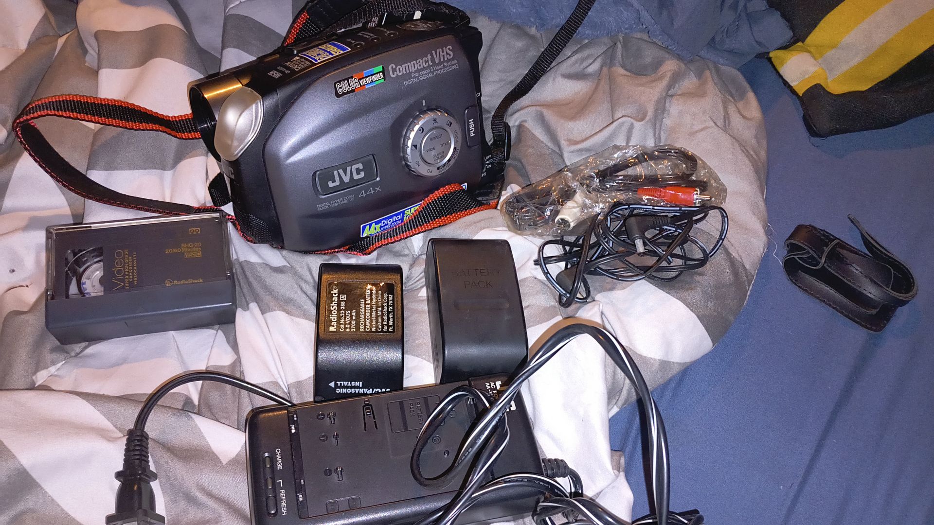 Older model JVC Recorder has everything even an extra rechargeable battery pack. Very great condition. Works really well. Comes also with a blank cassette