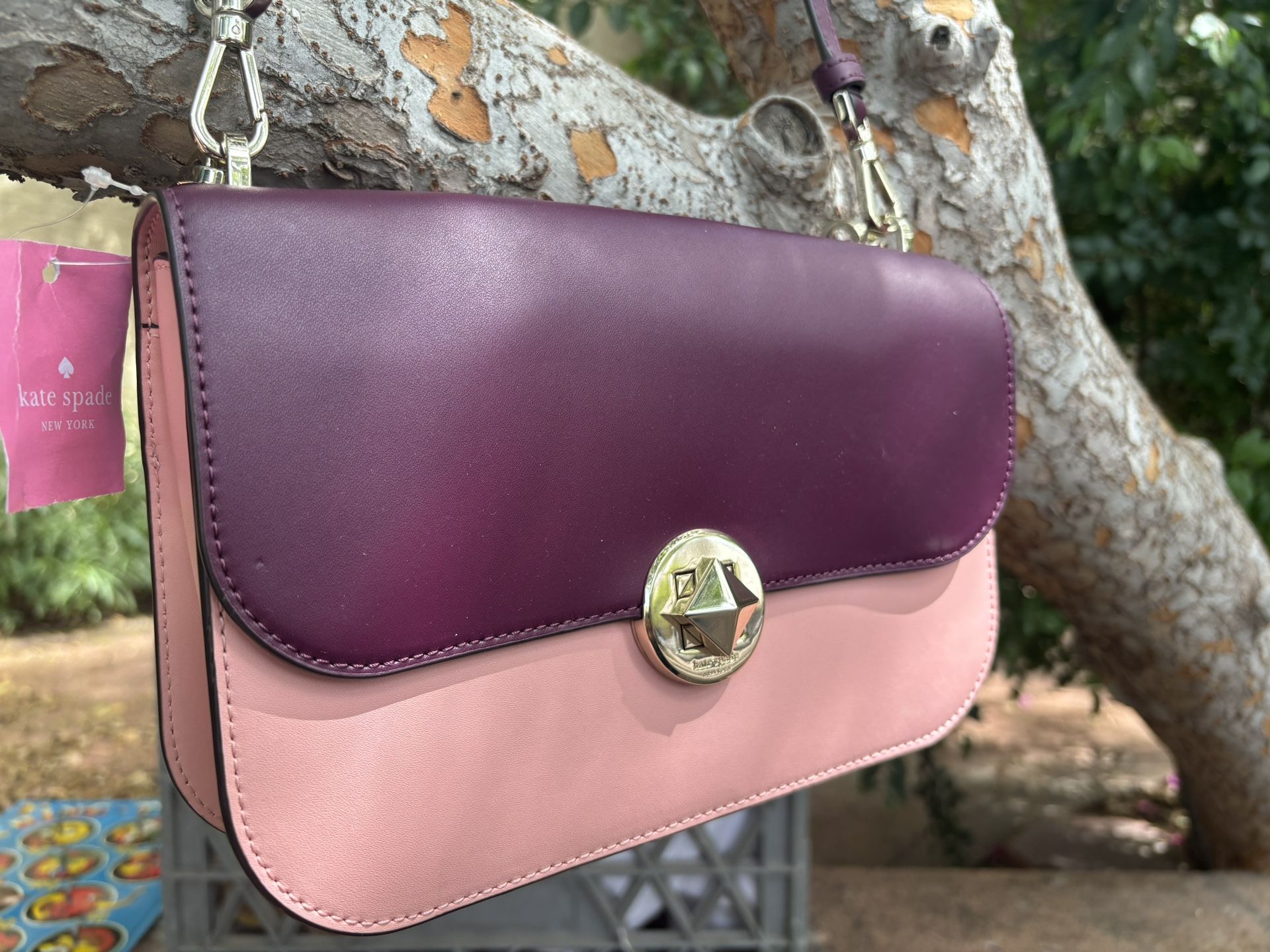 Authentic kate spade, dust bag NOT included Smooth leather, On hardware logo, Two way spade jacquard lining Inside zip pocket, 3 card slots. Outside slip pocket under flap, Flap with turn lock closure Wear as handbag or crossbody, removable strap Size: 6.08"h x 9.6"w x 2.92"d inches approximate Description Audrey collection by kate spade, leather crossbody