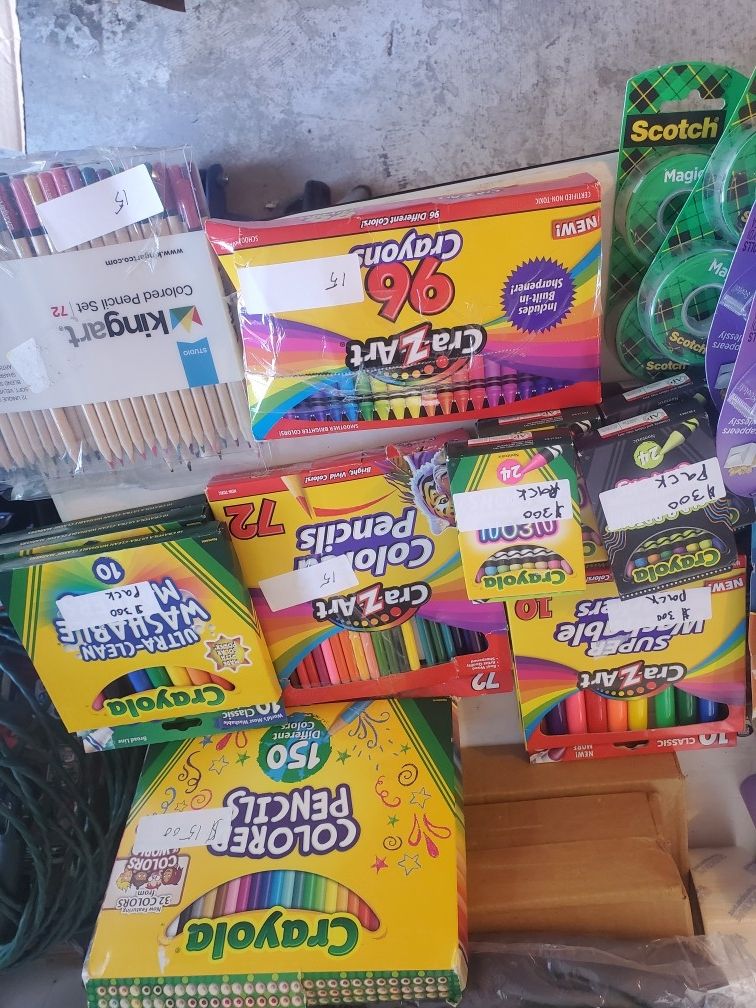 A lot of brand new stuff ! All is either brand-new as in still in the package(s)-etc, notebooks, assortment of different name brand pens•crayons•sharpiespp•markers•crayons/etc. pet stuff mostly for dogs but have some thing's for cats also★★ bags a¹ lot of different new stuff I can't even remember all the different types of things in there bc there's just sooo much stuff so this^ •List•^ I'up there that I've managed to remember, is only half of the stuff that is in there so... you can just imagine how much you'd be getting for your$$s worth.. ↑ o ^ what I've managh1at's half the stuff in there all one money good for flea markets all stores I have to get it out of the place I have it in 1295 or best takes it all good deal