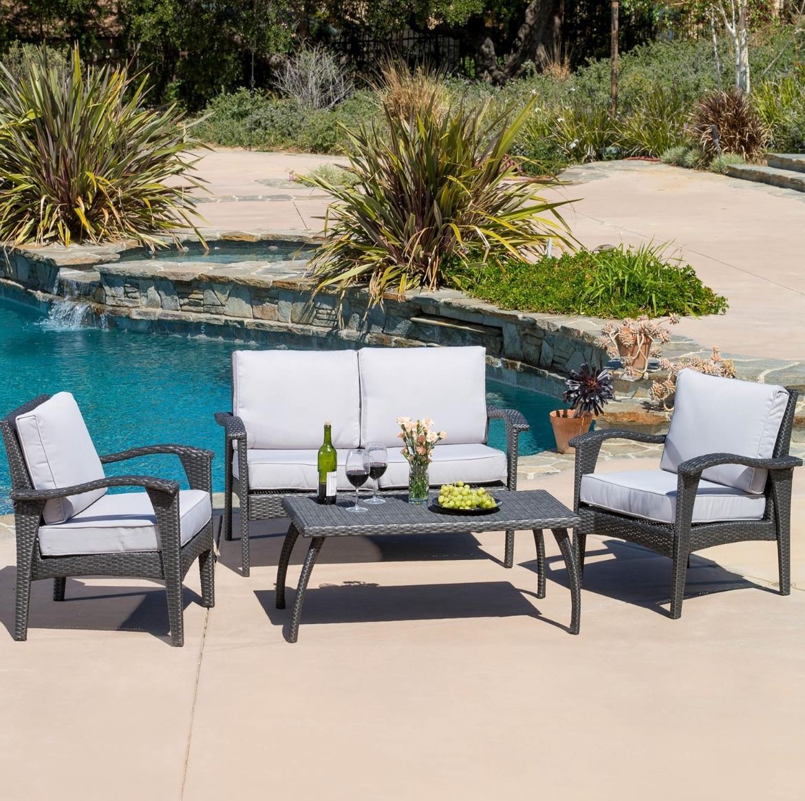 Outdoor 4-Piece Wicker Seating Set with Cushions