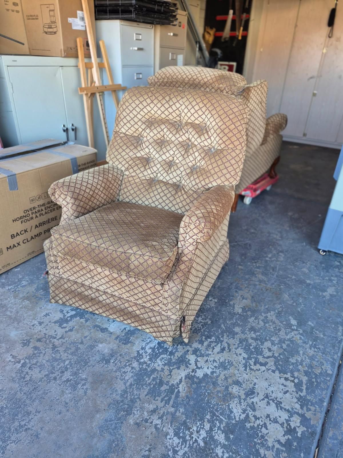 Beautiful La-Z-Boy quality Great bones for long lasting comfort Upgraded fabric Minor cleaning needed Small tear on chair apron